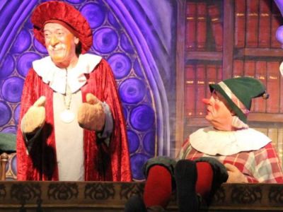 Dabei fordern die Schauspieler – allen voran Chef Roland Lotz als Kasper, der „sich ganz intelligent dumm stellen kann“ – das Publikum immer wieder zur Interaktion auf, sei es nun das Mitklatschen, das Fortsetzen von Sätzen oder Mithilfe beim Vertreiben der Furien zurück in die Hölle. An manchen Stellen können sich selbst die Schauspieler ein Schmunzeln nicht verkneifen. Denn gerade Lotz scheint immer wieder neue Ideen spontan einzubringen. Aktuelle Bezüge – Trump hat’s Trampolin erfunden – und Anpassungen an die Örtlichkeit der Aufführung machen das Stück, das das Kikeriki-Theater seit 2008 im Repertoire hat, immer wieder neu. Die Texte, meist auf Hessisch bis auf den schwäbelnden Famulus Wagner, oft derb und mit Zoten gewürzt, Puppen und Bühnenbild: Alles entsteht in der eigenen Werkstatt in Darmstadt.