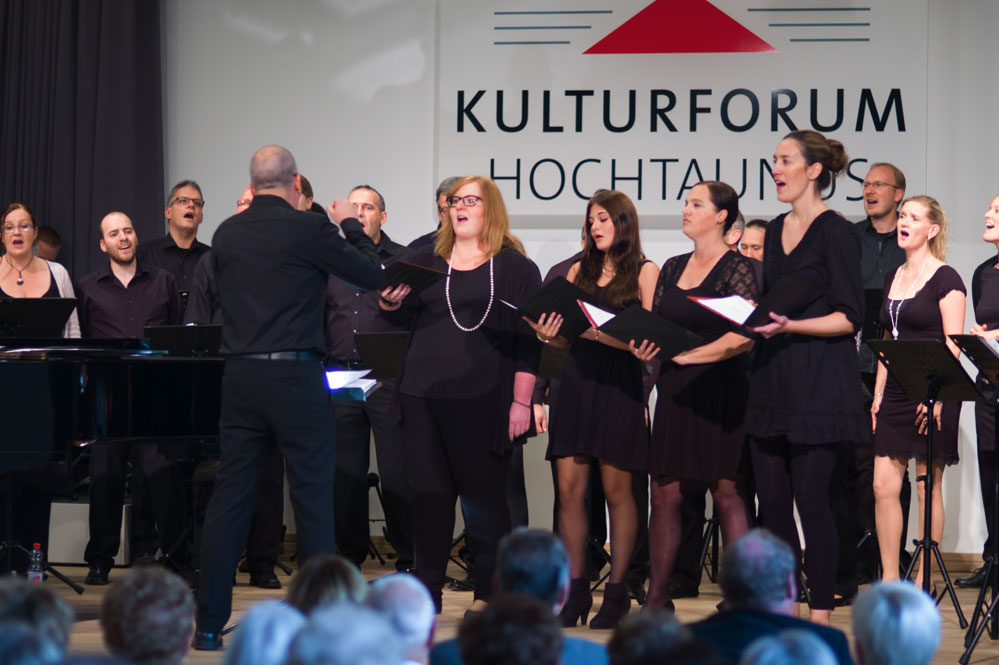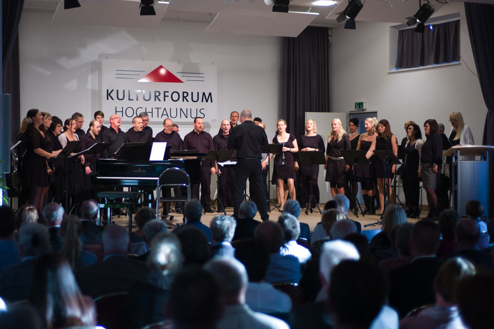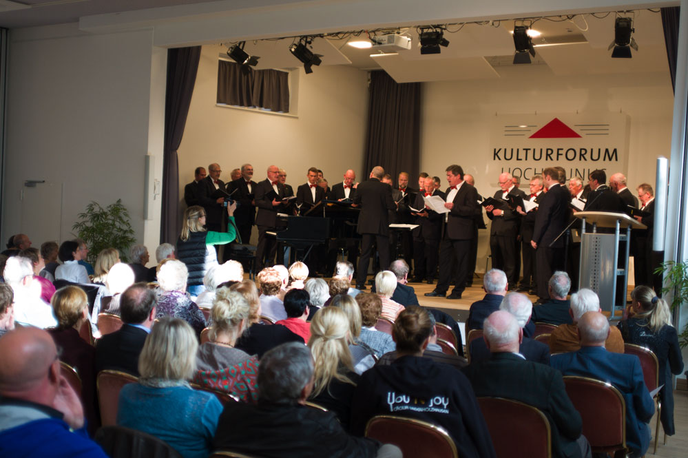 Mit „Hallelujah“ nach einem Arrangement von Henry S. Matthew zogen sie in den Saal ein, machten dem Publikum mit „Just the Way You Are“ von Bruni Mars kurzum eine direkte Liebeserklärung, ließen das Leben als „Viva La Vida“ von Coldplay hochleben und den Samba bei „Más Que Nada“ vorbeirauschen. „At the Hop“ führte in die Zeit des Rock ’n’ Roll und eine besondere Version von „Dieser Weg“ in die der Fußball-Weltmeisterschaft. Als sich der Chor dann an die von Freddie Mercury geschriebene „Bohemian Rhapsody“ wagte, da wurde es mucksmäuschenstill im Raum. Die Interpretation dieses Queen-Songs war so gelungen, dass sie selbst bei den älteren Zuhörern erst noch nachklingen musste, bis der Applaus aufbrauste. Mit Lippenakrobatik, eben weil das Lied „The Auctioneer“ immer einen Takt schneller gesungen wurde, endete der offizielle Vortrag dieses bemerkenswerten Chores, der natürlich nicht ohne Zugabe entlassen wurde.